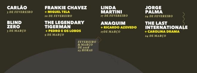 Os concertos têm todos início às 23h00.