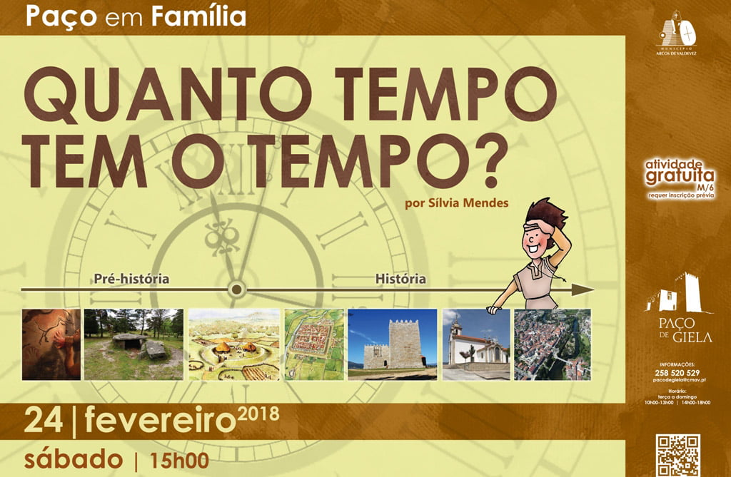 Inspirados nos vestígios do passado expostos no Núcleo Museológico do Paço de Giela, aqui vamos aprender a contar e a dividir o tempo e conhecer os diferentes períodos da História em Portugal e na região.