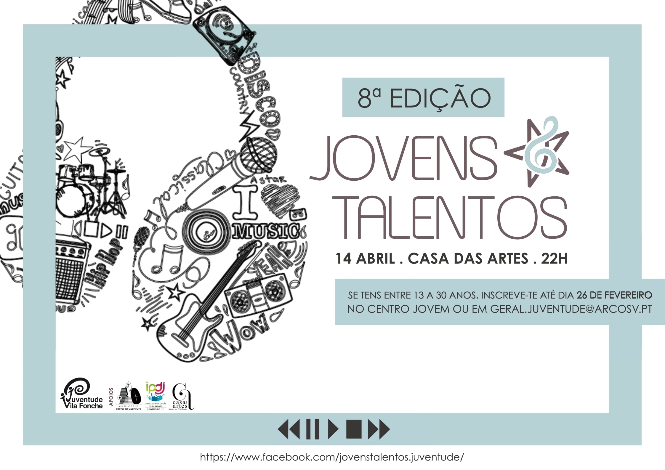 As inscrições para a 8ª edição terminam a 26 de fevereiro e toda a informação necessária pode ser consultada na página oficial de facebook @jovenstalentos.juventude ou em @ASRJuventudeVilaFoche .