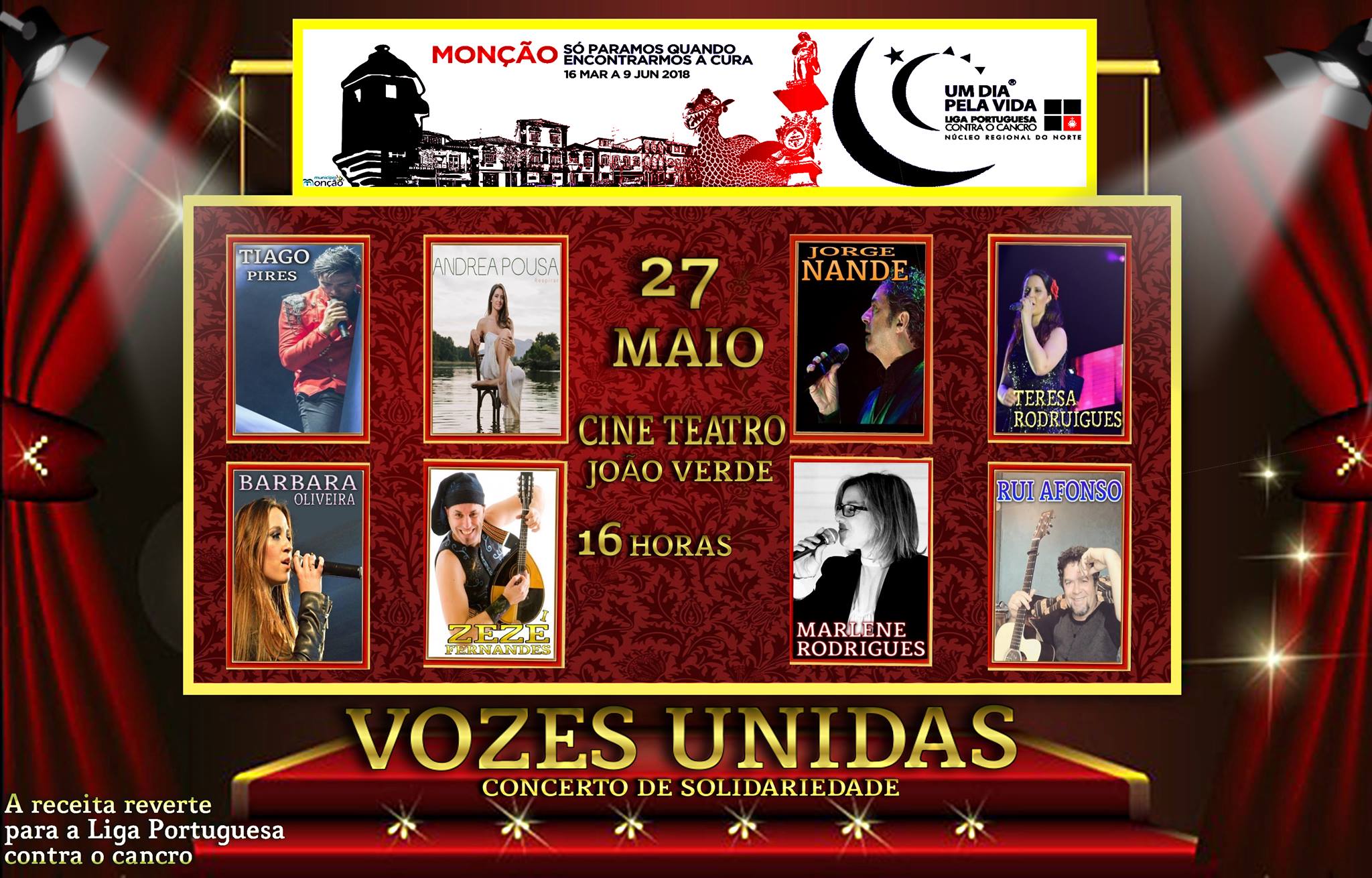 Nesta tarde solidária, onde se pretende homenagear aqueles que lutam contra o cancro, estão previstas atuações de Andrea Pousa, Barbara Oliveira, Jorge Nande, Marlene Rodrigues, Rui Afonso, Teresa Rodrigues, Tiago Pires e Zéze Fernandes.