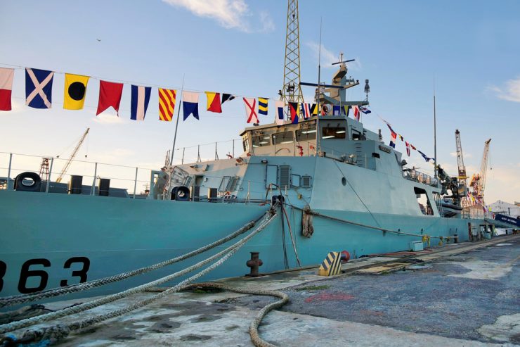 O primeiro-ministro referia-se à construção de mais seis Navios de Patrulha Oceânica (NPO) e de um Navio Polivalente Logístico, investimento que disse integrar o compromisso assumido por Portugal junto da NATO de reforço do dispositivo das Forças Armadas até 2024.