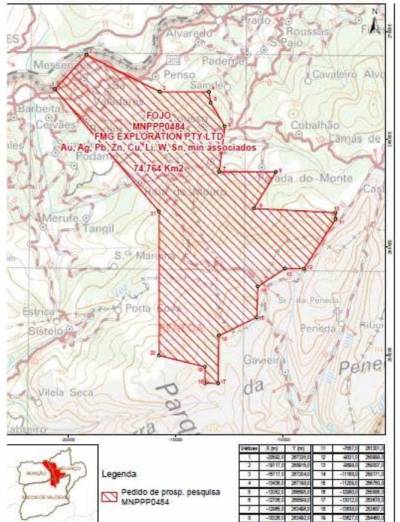 Em causa está um requerimento para atribuição de direitos de prospeção e pesquisa de depósitos minerais na área denominada Fojo apresentado à Direção Geral de Energia e Geologia (DGEG) pela empresa australiana Fortescue Metals Group Exploration pty.