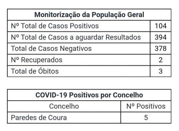 A informação consta no relatório diário, divulgado hoje na página de Facebook do município, que avança com números do distrito de Viana do Castelo e do concelho de Paredes de Coura, segundo dados oficiais da Unidade Local de Saúde do Alto Minho.