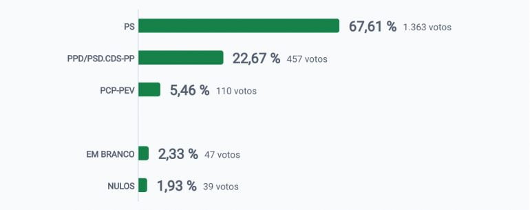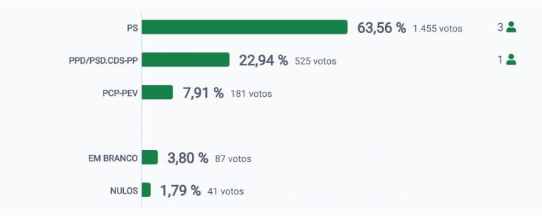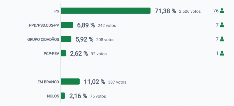 No concelho de Paredes de Coura até às 21h08, com cinco freguesias por apurar, o resultado das votações é o seguinte: