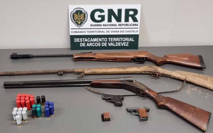 Em comunicado, a GNR deu nota que “na sequência de uma denúncia de desavenças, em que o suspeito ameaçou um familiar com arma de ar comprimido, os militares da Guarda deslocaram-se ao local e na sequência das diligências policiais, realizaram uma busca domiciliária, tendo sido apreendida uma arma de ar comprimido, duas caçadeiras (sem documentação), duas pistolas (sem documentação) e 49 munições de diversos calibres”.