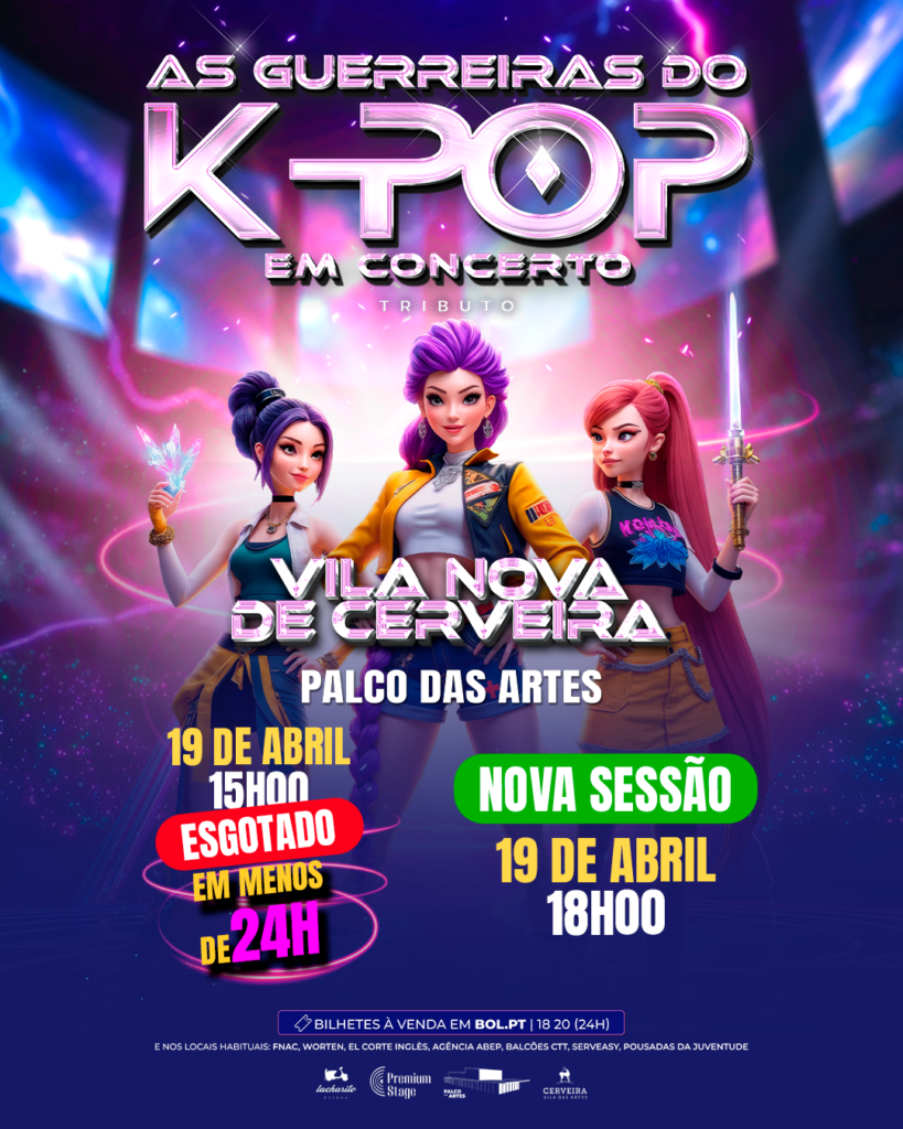 O espetáculo “As Guerreiras do K-POP em Concerto (Tributo)” esgotou a sessão das 15h00, no dia 19 de abril, no Palco das Artes de Vila Nova de Cerveira, em menos de 24 horas após o início da venda de bilhetes.