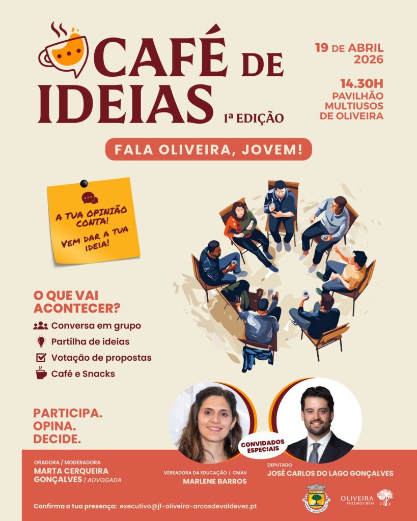 A freguesia de Oliveira, em Arcos de Valdevez, está a promover a primeira edição do “Café de Ideias”. Esta iniciativa é dirigida aos jovens, e tem lugar no próximo dia 19 de abril, pelas 14h30, no Pavilhão Multiusos de Oliveira.